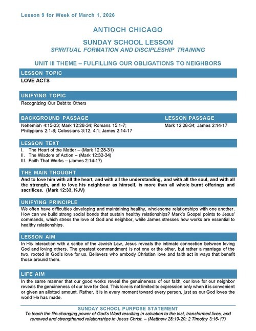 THEME: FULFILLING OUR OBLIGATIONS TO NEIGHBORS